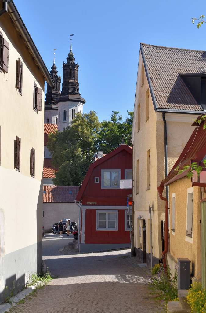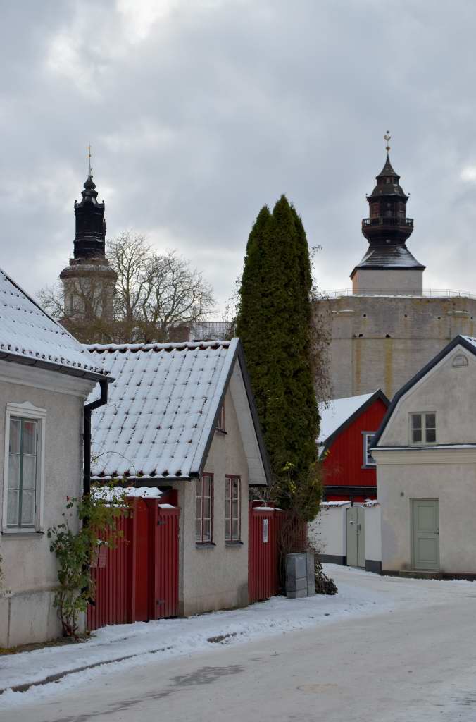 Fotnot: Om du tar bilen in till innerstan är det möjligt att du kommer via Norderport. På sjätte bilden har vi vänt oss om och du ser den berömda porten. Odalgatan bör vara en rejält trafikerad gata, med tanke på att det är ytterst få portar som används som biltrafik. Domkyrkans torn syns lite överallt. Idag för exakt 4,5 år sedan såg vi dem från hyttfönstret. Den augustidagen som vi anlände till vår första dag som fastboende på Gotland.