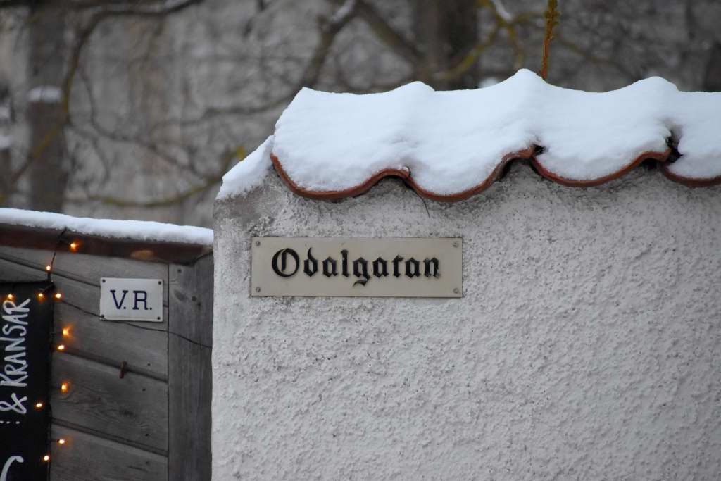 Fotnot: Efter två gränder nådde vi fram till en av våra favoritgator. Det har nästan blivit som en tyst tradition. Den att aldrig bli blind på hemmaplan. Att inte ha så bråttom att vi cyklar eller promenerar förbi ”nischen” till utsikten över centrum och havet. På turistkartor finns platsen ibland med som en markering. Här har vi befunnit oss på tidiga mornar. Sena kvällar när den gula lampan sakta gått ner i Östersjön. Alltid händer det något spännande på sjön. Det har hänt att vi fikat där. En gång kom det ut en trevlig kvinna från huset med den vackra blå dörren och pratade med mig. Kom att tänka på vanor. När vi använder apostlahästarna kommer vi nästan alltid från den rutt vi än så länge visat upp, Östra Tullgränd och Torngränd. När vi cyklar är det tvärtom. Då rullar vi längs Trappgatan från andra hållet. På näst sista fotot fotograferar vi från Trappgatan och det finns en trappa på bilden. Kanske därför vi lät den få glänsa redan i denna akt. Men egentligen borde det mysiga, röda huset ha en annan gatuadress. I nästa akt får du svaret.