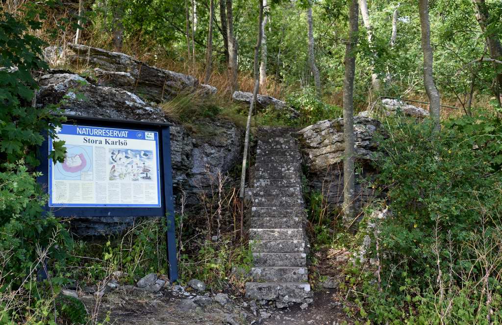 Vi skiljdes från ”Den lilla blå” ovanför klintkanten. Sedan bar det iväg nerför branta partier, som inte passar dem som har svårt för att gå. På ett par ställen finns ”trappor”.
