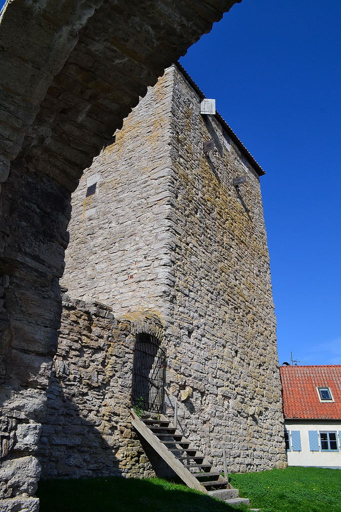 Tornet uppfördes som ett strategiskt försvarstorn. 1901 gjordes en undersökning och då påträffades en mängd av kaststenar i de översta våningarnas nischer. Tydligen hörde de till tornets vapenförråd. Ruskiga vapen på den tiden. Var tid har sina ”egna krig”. Människor med makt har tydligen svårt för att lära sig vissa, för mig, givna grundregler.
