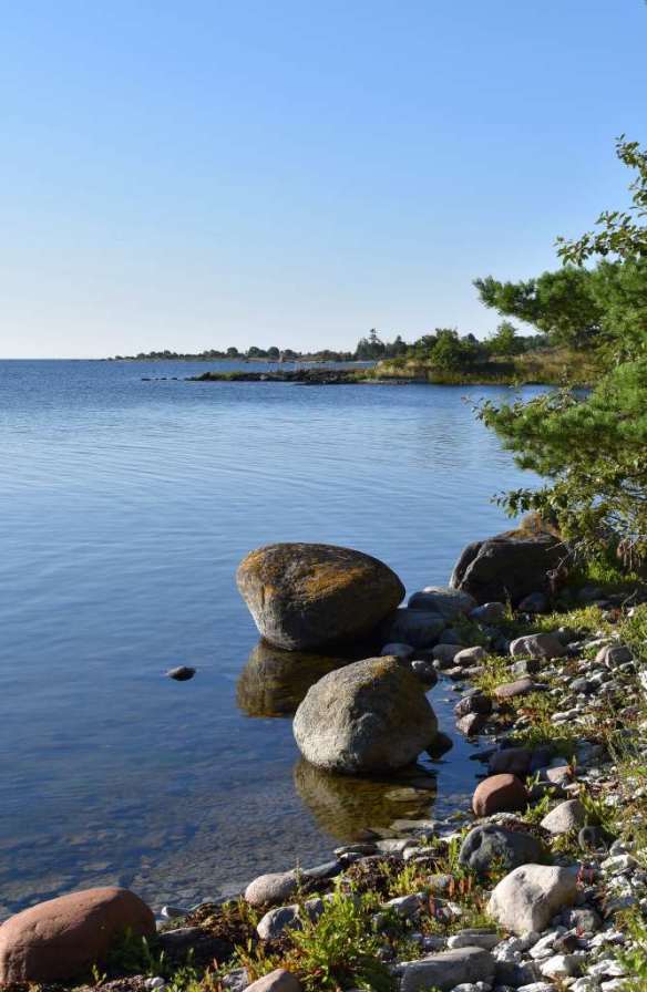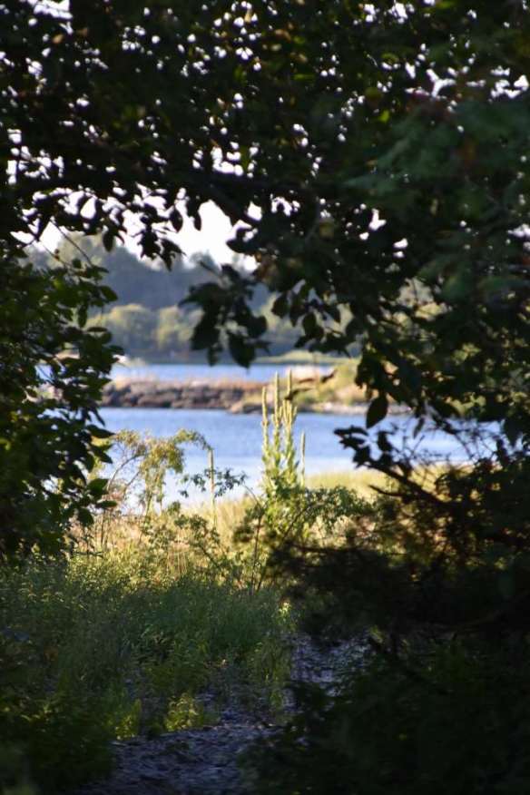 Det var så skönt och fridfullt, där vi satt och intog frukosten och drack varmt. Jag noterade en kvinna som gick med stavar, en man som hämtade post i en låda och två män som stack ut med en motorbåt. Kanske skulle de ha färsk fisk till frukost. En blåmanet såg jag också i vattnet. Hade den kommit vilse?