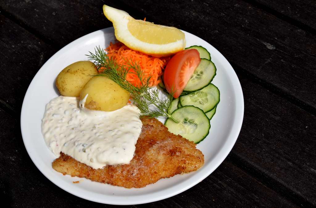 Från vår hyrda stuga ”Burgen” hade vi nära till naturreservat med vidsträckt raukfält, gammalt fiskeläge, härlig havskust och berömda Pensionat Holmhallar. På fem minuter nådde vi till menytavlan, från stugan. Personligen hade jag längtat efter att återigen få smaka på Rödspätta med remouladsås.