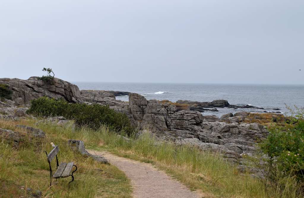Detta är norr om Svaneke. Om vi fortsatt ungefär 2 kilometer hade vi kommit till vackra Listed, som vi redan haft med i bloggen några gånger. (Vacker solnedgång, utomhuskonst, fiskehamn och världens längsta skuggmänniskor.) Men denna gång tänkte vi bara gå till vi kände de första vattenstänken från ovan.
