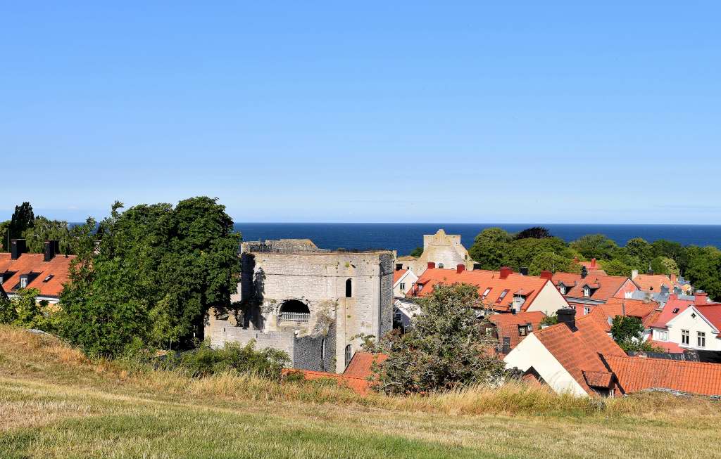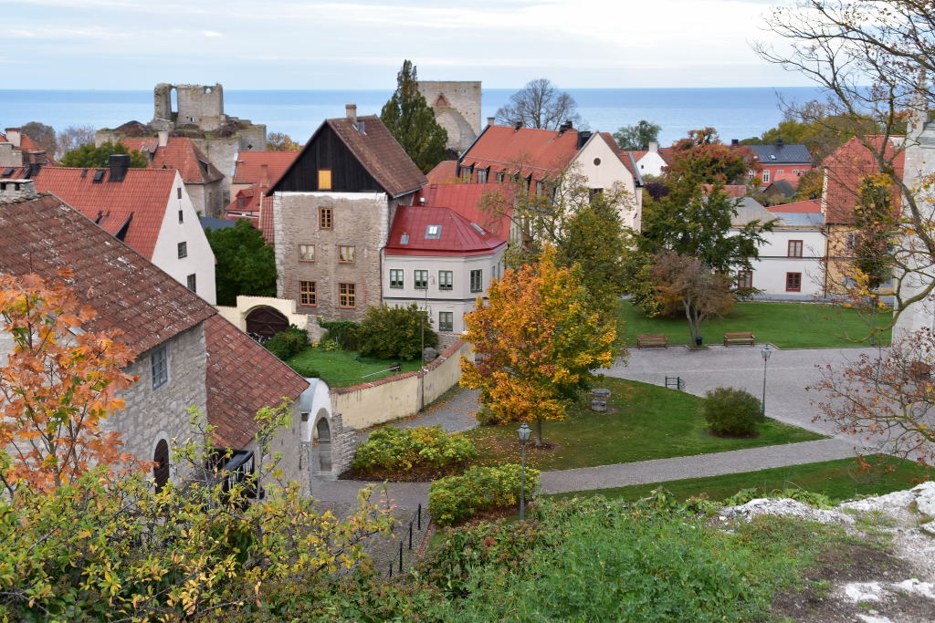Det är svårt att ha så ont om tid, att det inte finns utrymme för en stunds njutning från Kyrkberget. Till vänster ser du S:ta Katarina som även kallas S:ta Karins kyrkoruin. Ruinen ligger precis bredvid Stora torget.