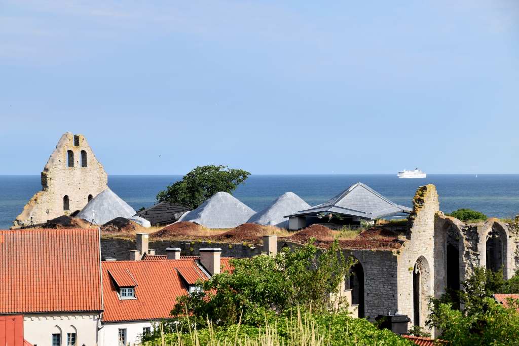 Om du kommer med färjan till Visby är det svårt från hamnen och en bit ut i havet låta bli att se S:ta Maria domkyrka. Under våra promenader i centrum har vi noterat att kyrkan eller åtminstone något av de tre tornen syns – nästan lite överallt. Vill du se interiören är det bara att trycka på den blå länken. https://gotlanduppochner.com/2022/05/20/den-syns-nastan-overallt-del-2/ Annars följer du med i bildsvepet från tio olika positioner innanför och utanför den mäktiga medeltidsmuren. Hoppas du får en fin söndag. Här lyser solen och det är läge för en utflykt efter lunch.