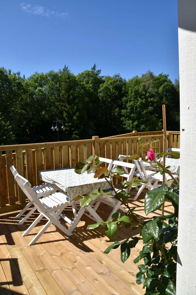 Ser på Facebook att det hänt mycket i, på och runt huset under detta år. Ny glasveranda, större kök och fler sittplatser både ute och inne m.m. På verandan hade jag gärna suttit, men insåg att det nog skulle vara skönare med en lite mer skuggig plats i trädgården.