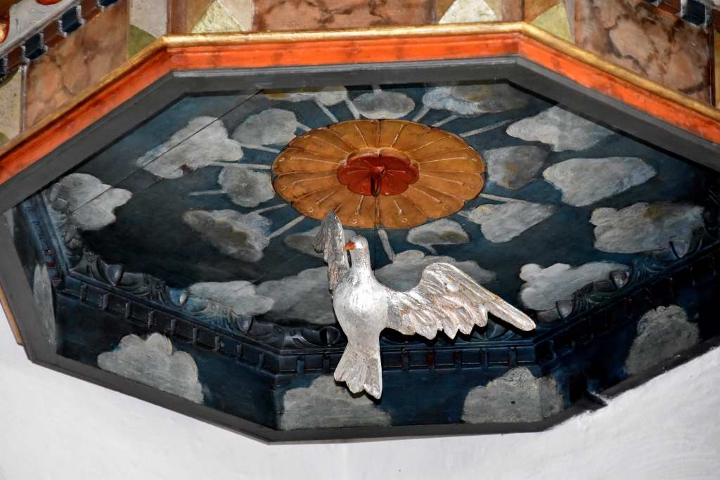 Predikstolen är från slutet av 1600-talet och målades 1743. Uppgången till predikstolen leder genom korets västra mur.