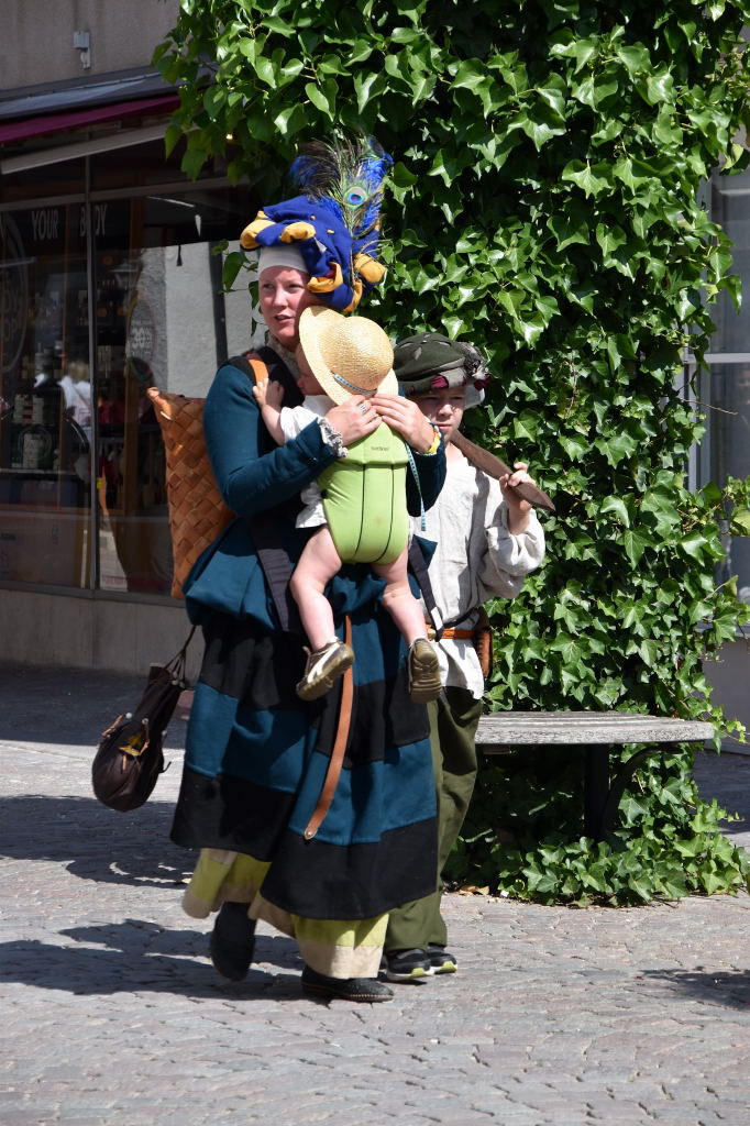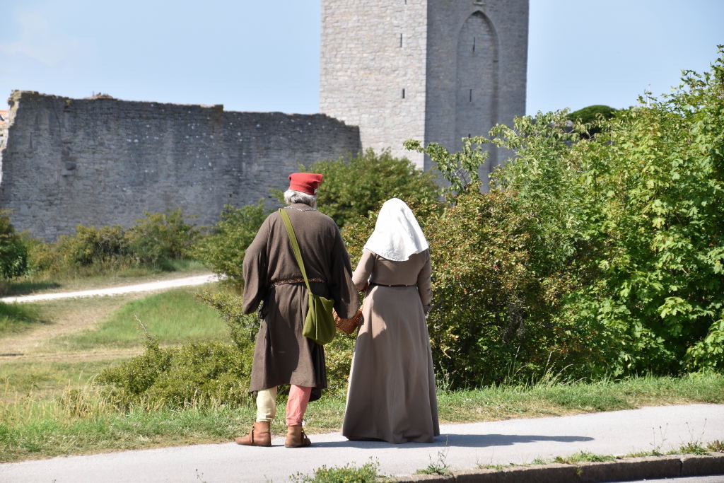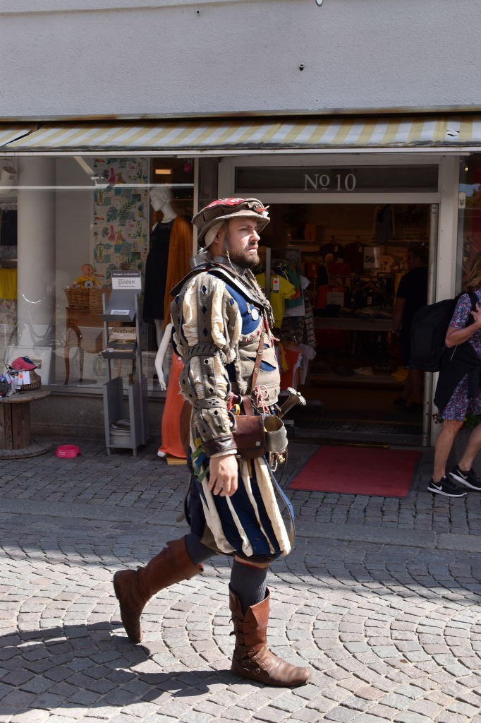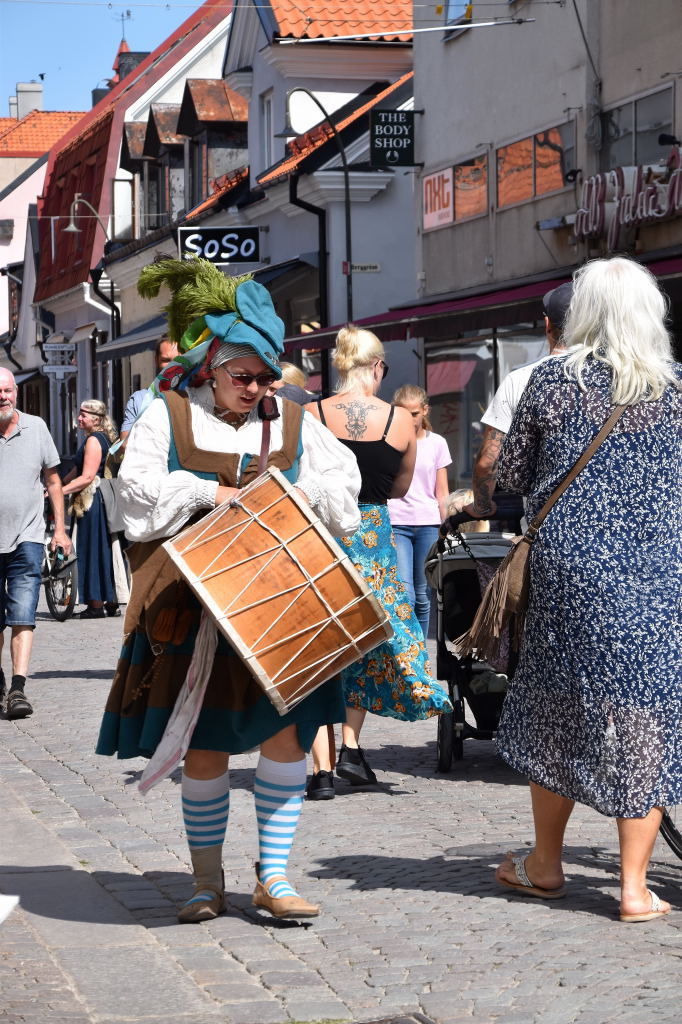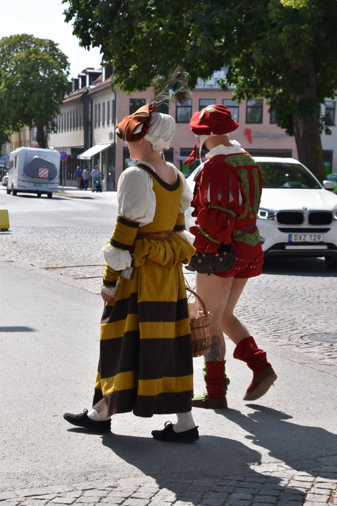 Knutas höll på att bli omkullsprungen av ett följe människor som drog genom gränderna i medeltida dräkter.