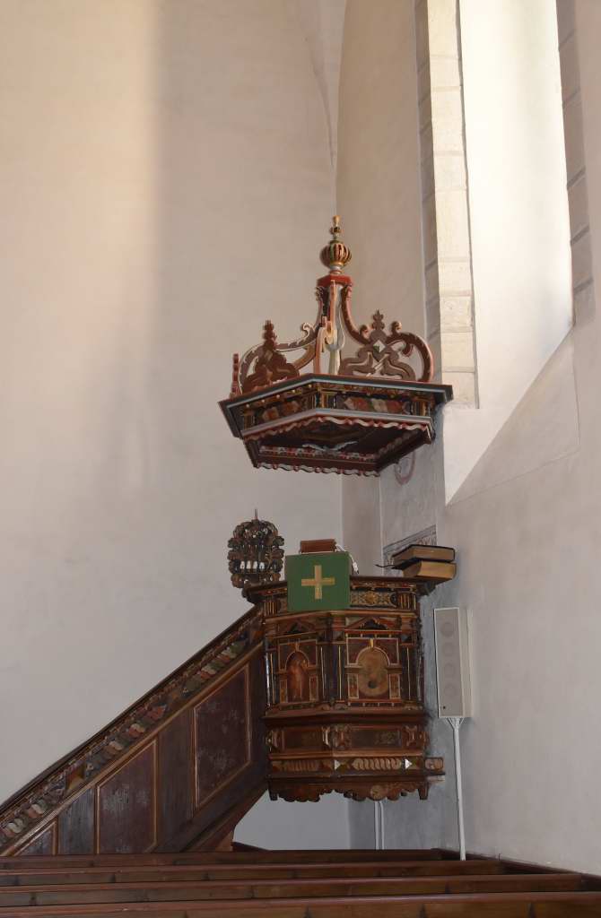 Predikstolen är från 1600-talet.