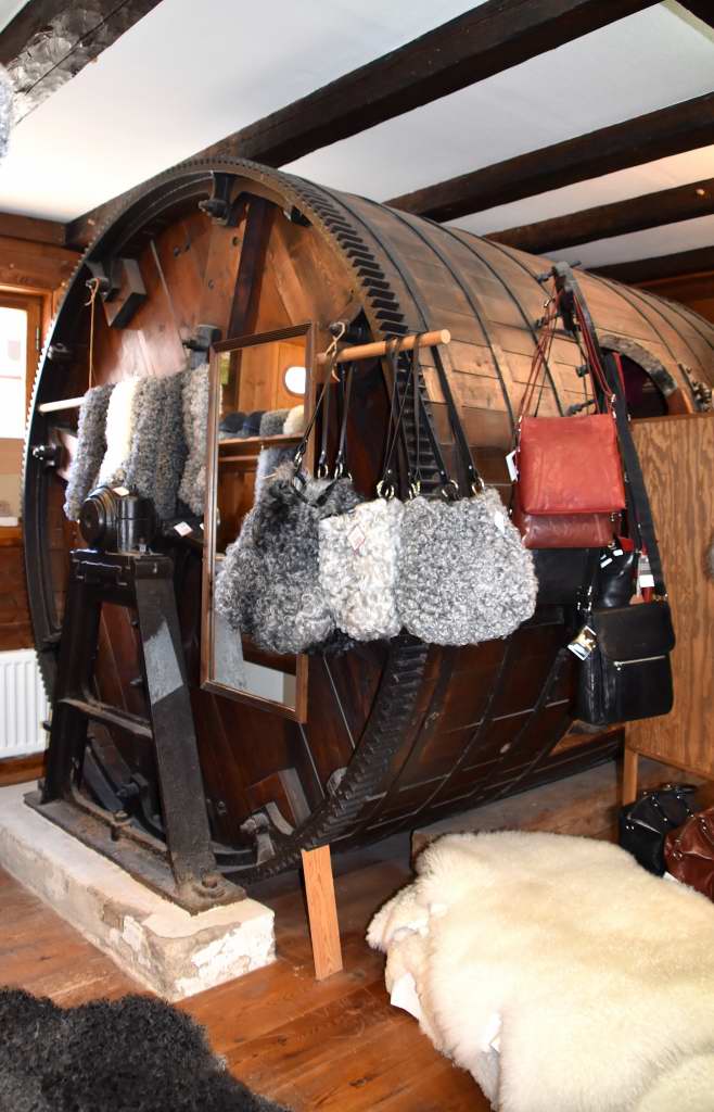 Jag gillar verkligen att den här fantastiska ”tunnan” som tidigare använts i garveriet numera blivit en perfekt del av butiksverksamheten.
