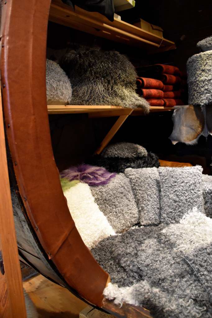 Det kan man se! ”Det är med stor glädje som vi utifrån varje skinns beskaffenhet skapar vackra produkter i den egna ateljén”, läser jag vidare. Tänk att man kan använda lammskinn till så mycket.