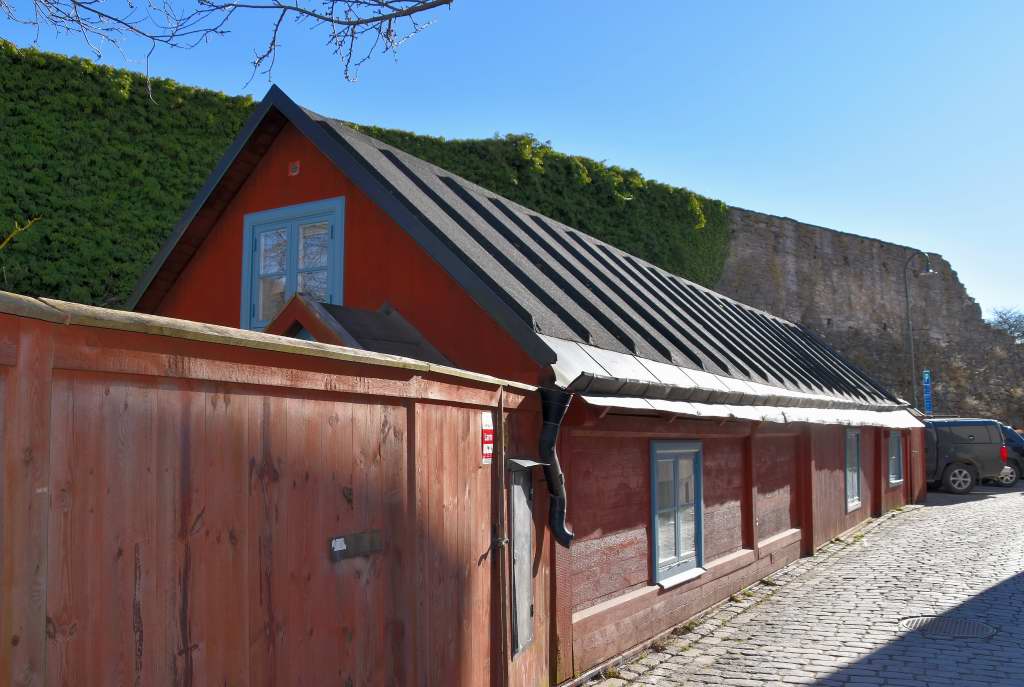Trästugan är från 1600-talet. Tornet bakom i Landmuren har inget namn. Men kanske minns du att Ringmuren stod klar 1288.