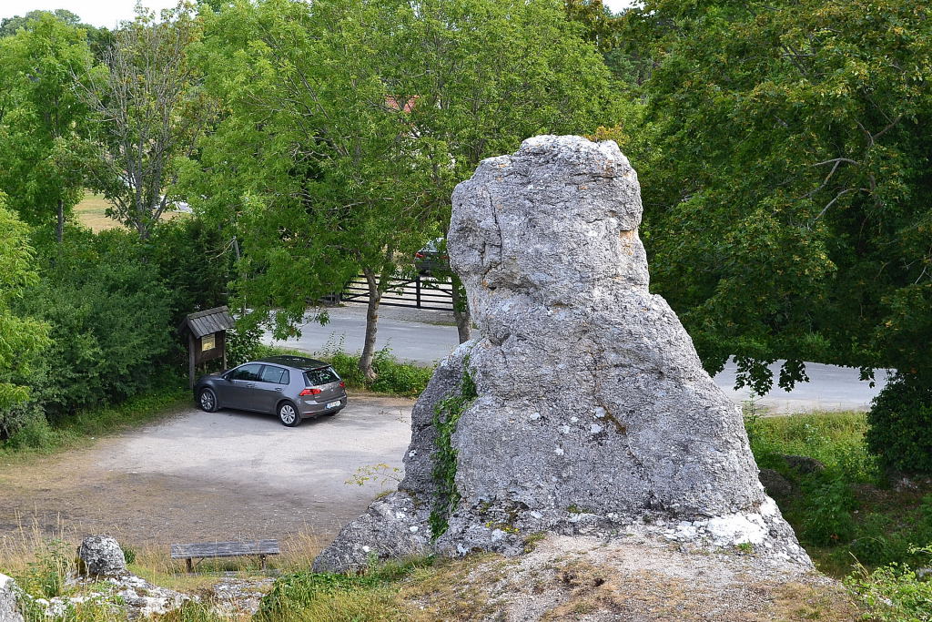 Någon hade bråttom hem från den heta sommaren 2018. I bakgrunden ser du Gotlands högsta rauk. Vet du eller kommer du ihåg vad den heter? Annars är det bara att gå till kategorin raukar i höger spalt.