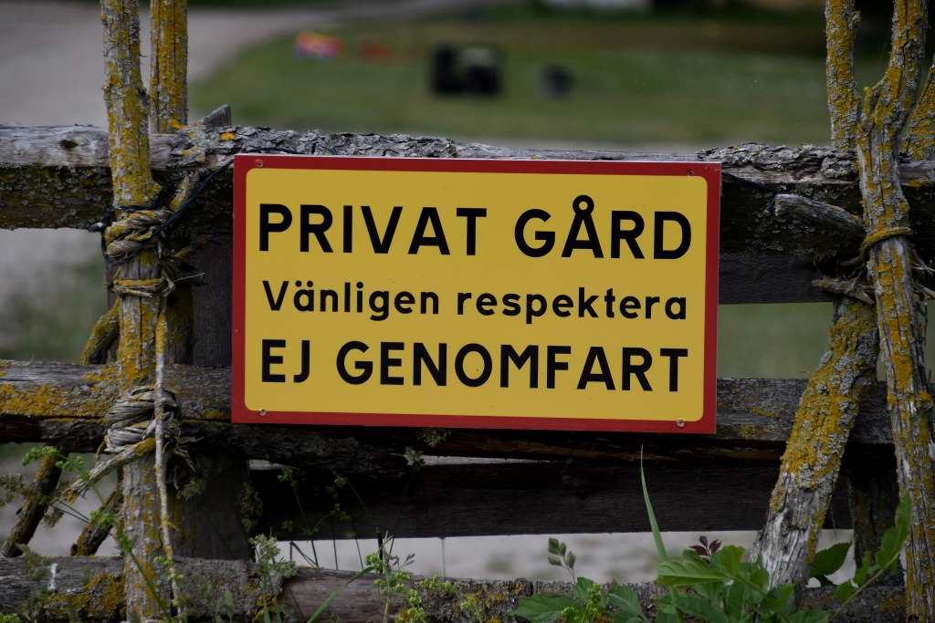Självklart hade varken jag eller ”Den lilla blå” några planer på att ta oss in. Måste vara jobbigt och farligt när människor inte respekterar detta (syftar enbart på motorfordon). Samtidigt visste jag enligt mina anteckningar om villkoren från Länsstyrelsen, som ställt upp med money för restaureringen, enligt artikel 6/9-19. Alltså kunde ”jag och kameran” traskat in och tagit några närbilder. Men min stundtals vilda fantasi tänkte på en rejäl stor hungrig hundras som kom fram bakom hörnet och ville hälsa på mig… Själv är jag ju blyg som en viol eller var det fiol? 😉
