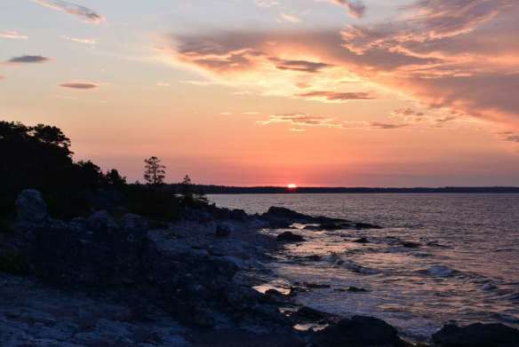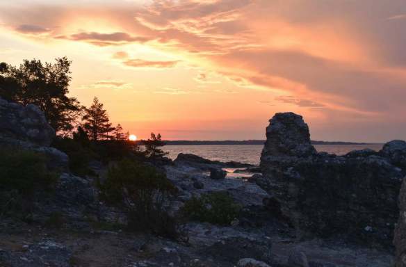 Raukarna i Folhammar och på östra kusten är bortskämda efter att ha sett biljoner soluppgångar. Därför kunde jag inte låta bli. Okej! Jag vet att det är omoget. Men när Solveig inte hörde det skröt jag för några raukar. Viskade att jag hade sett ”biljarder” SOLNEDGÅNGAR. ”Ni har inte sett en enda!” 😉
