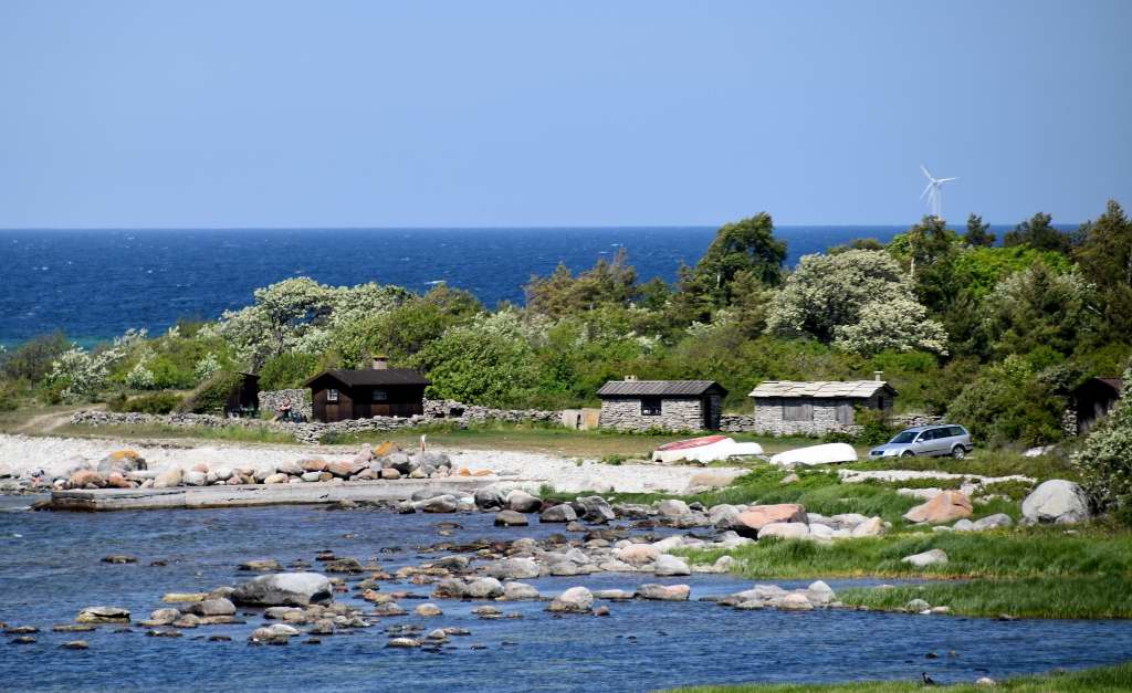 Vid två tillfällen har jag suttit och fikat vid polkagrisfyren i När och studerat omgivningarna. När jag zoomat in har jag sett en bit av ett fiskeläge på andra sidan viken. Aha! Tänkte mina två hjärnceller och höll ett tidigt möte.
