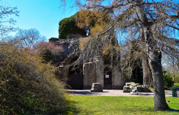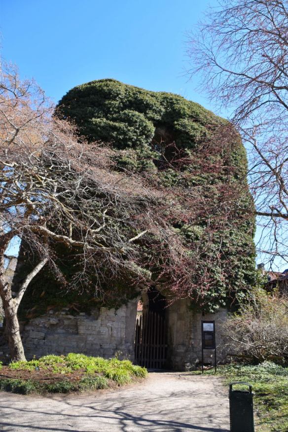 I det sydöstra hörnet av Botaniska Trädgården finns en ruin under gömman av murgröna.