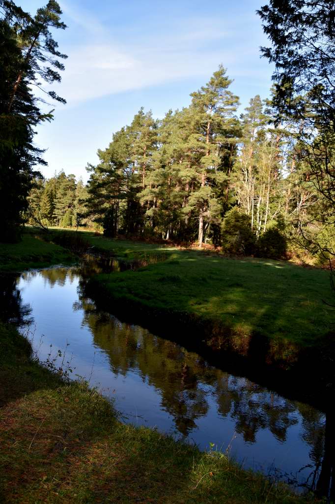 Vid detta andra besök följde vi ån längre bort och längre in i skogen. På de öppna ytorna fanns spår av boskapen som hållit till här. Eftersom vi inte såg några kalvar kunde vi sätta oss på en bänk och plocka fram kaffetermosen och vårt ätbara. Solen värmde våra kinder och livet var så lätt. ❤