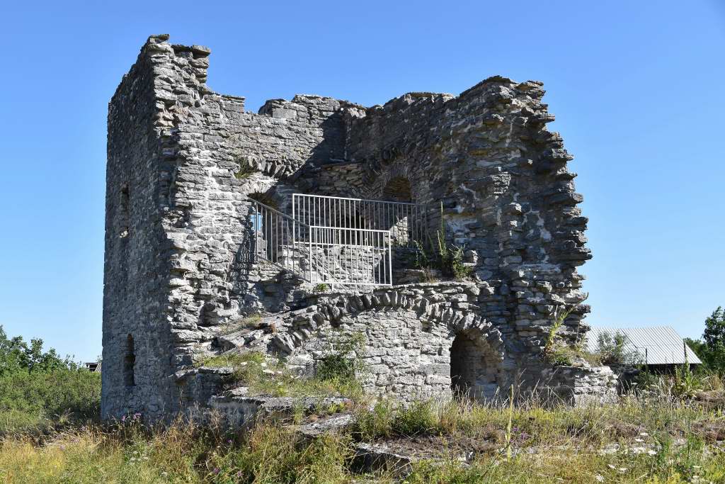 Solveig såg en skylt om en sevärdhet. Därför vek vi av från den större vägen och nådde ganska snabbt fram till stenhuset från 1200-talet.