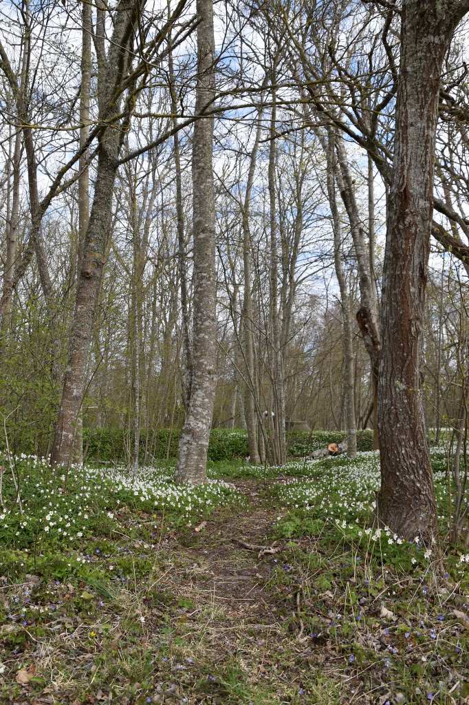 Några få vitsippor tävlade om att fånga upp solens sista strålar.